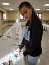 Girl Scout Cadette, Sophie Regenye is very happy with the 105 glass mosaic leaves created by community volunteers at St. Luke's Church.