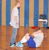 (Jared Ferguson, a fifth-grader at Beachwood Elementary School, holds a yoga position during one of the school’s Fit Day activities. Staff at the school, part of the Toms River Regional School District, held Fit Day to help send the message of how much fun fitness can be -- as well as how good it can be for children overall. Credits: Karen Wall)