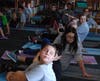 While students were gobbling the squash and zucchini, in the gym fifth-graders were taking part in a range of activities designed by gym teachers Paul Brush and Danielle Dilts, including jumping rope, pushups against tires, wall sits and more. Brush’s wife, Marci Brush, who teaches at Toms River High School East, came for the day to teach yoga, while Beachwood teacher Jackie Citta led the students through a Zumba routine.