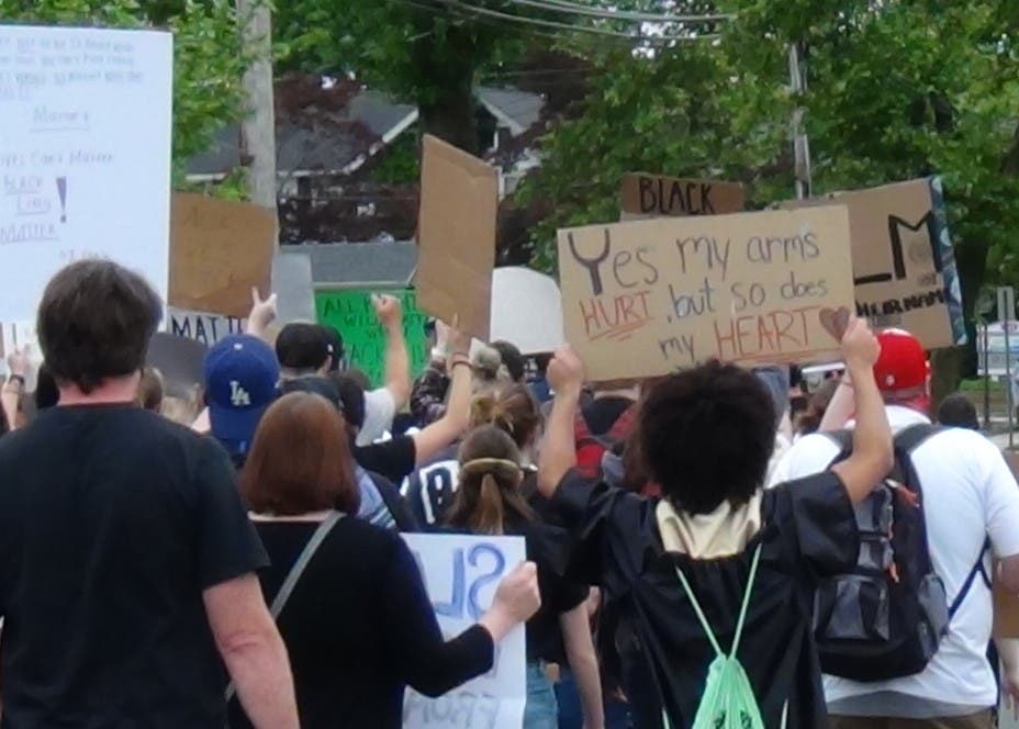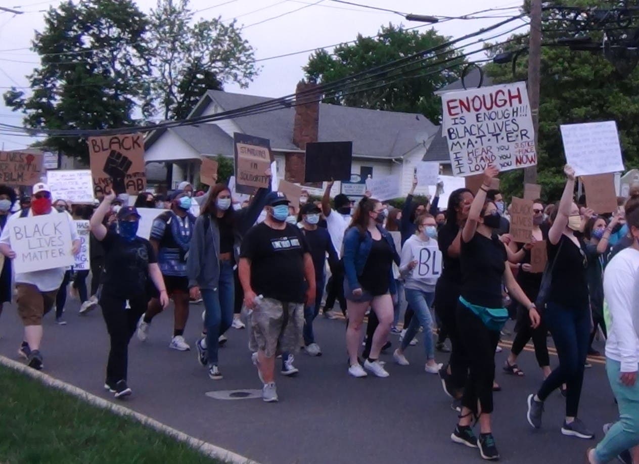 The protest was one of dozens around the country and around New Jersey that have arisen in the wake of the death of Floyd, 46, who died after a Minneapolis police officer kneeled on his neck on May 25 after being arrested following a 911 call reporting a counterfeit $20 bill.