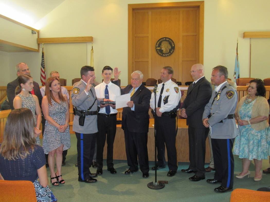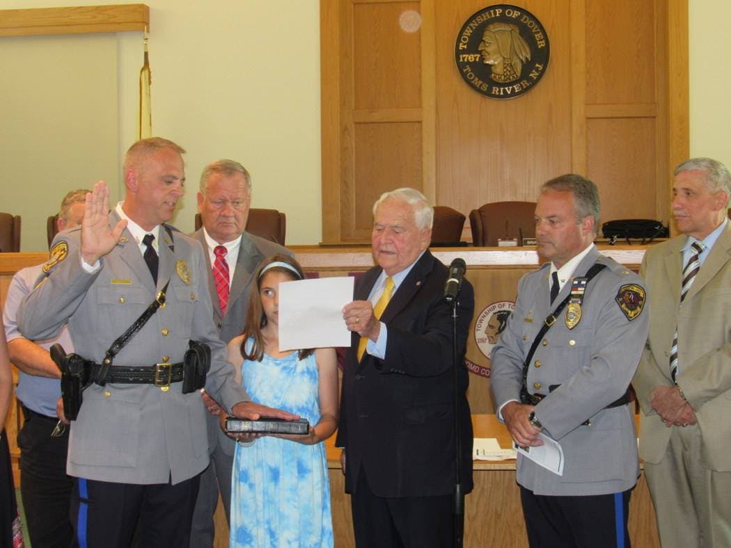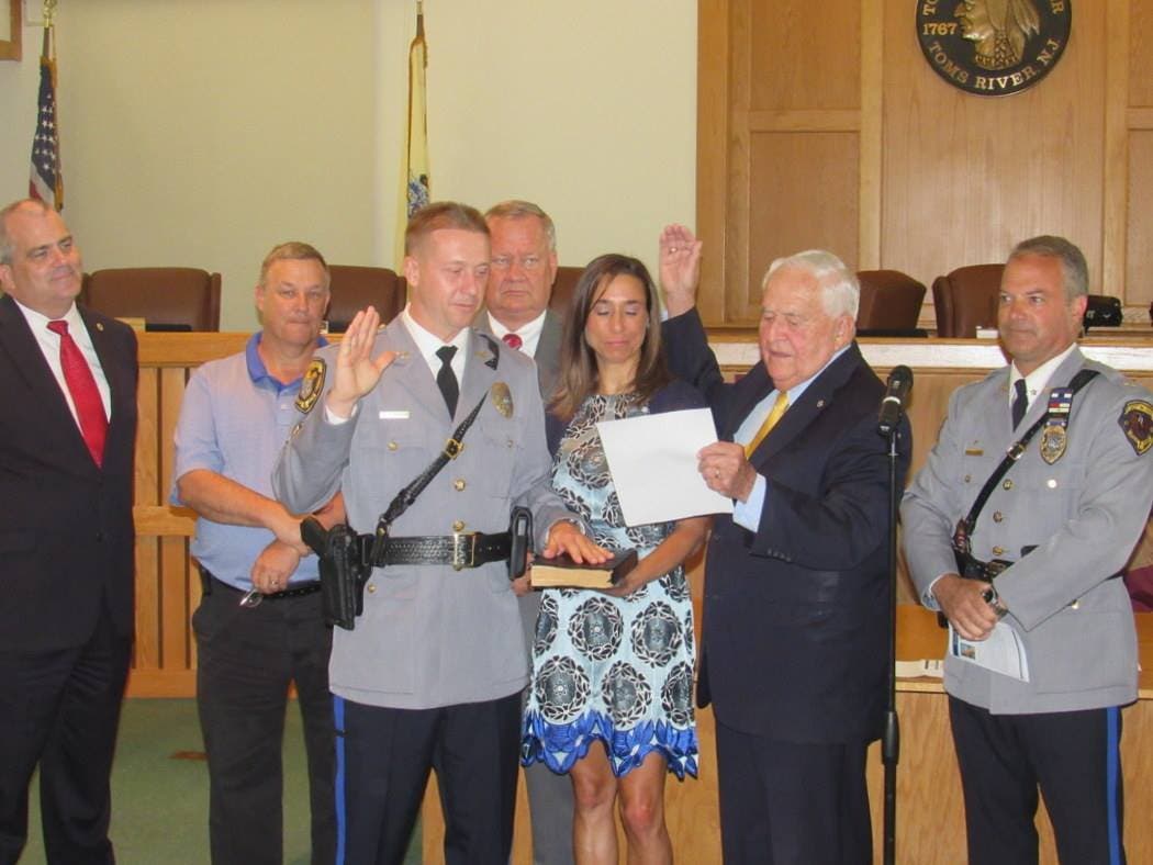 TOMS RIVER, NJ -- Toms River officials paused to honor a retiring police lieutenant and promote three officers Monday night at the Toms River Township Council meeting.