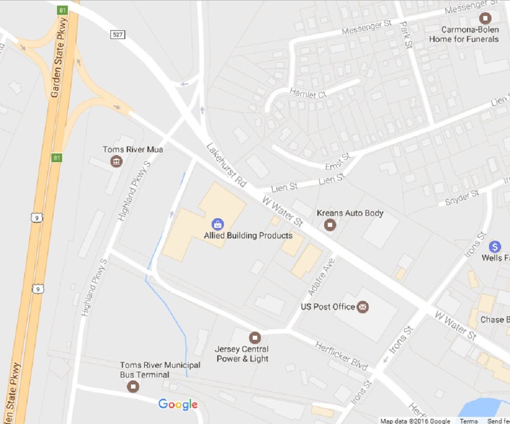 Toms River Police car photo by Karen Wall; Map via Google Maps