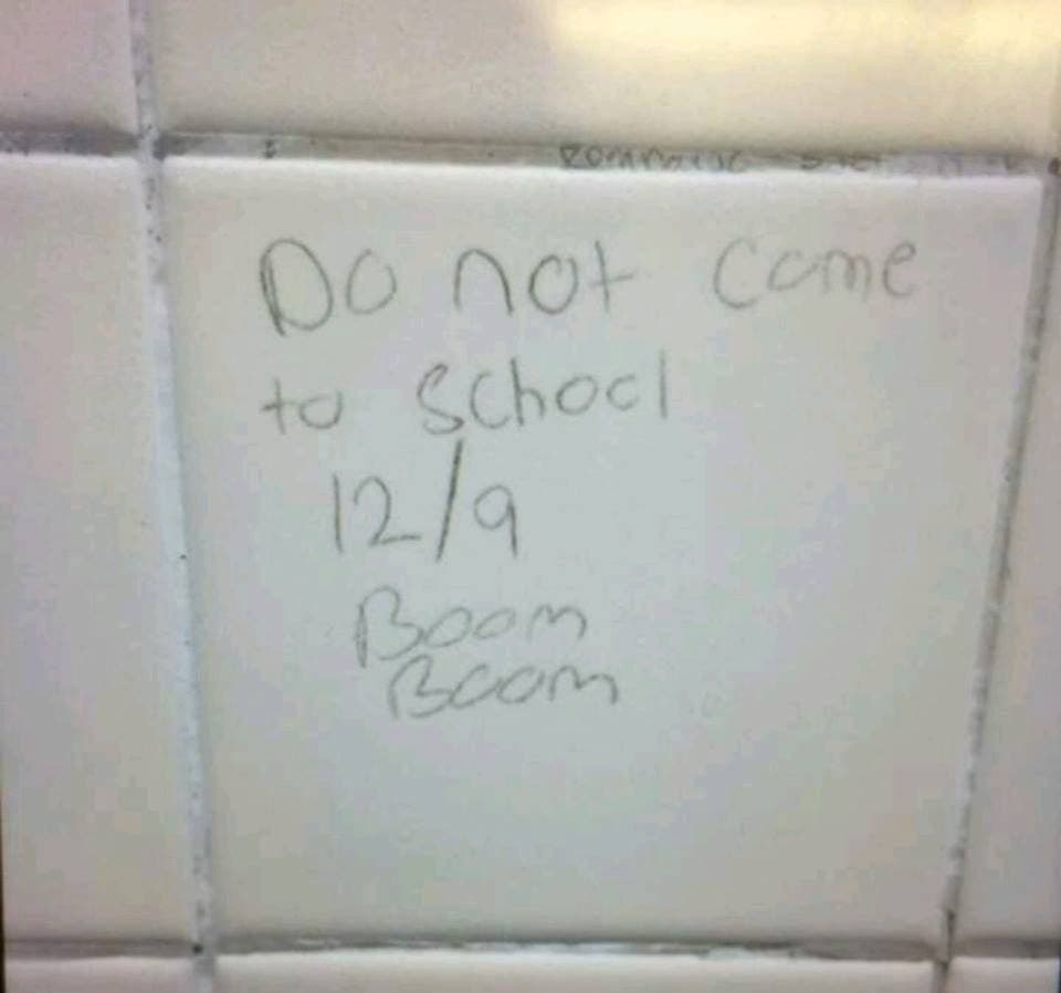 The threat, a photo of which was posted to Facebook on Thursday, read, "Do not come to school 12/9 Boom Boom."