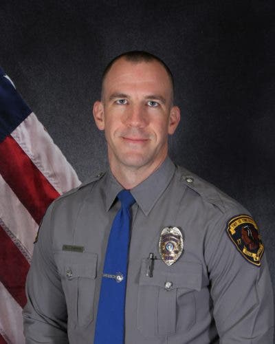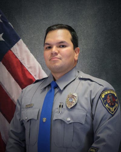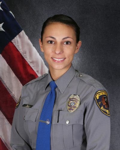 Officer Bridgette Badalis received the Life-Saving Award. On June 16, 2021, Badalis responded to a serious crash at Route 70 and Whitesville Road. A motorcyclist had his leg amputated in the crash, directly above the knee. A good Samaritan had placed a belt on the leg to slow down the bleeding. Badalis added her department-issued tourniquet to the victim's leg, but when she saw the wound was still bleeding, she added another tourniquet, which fully stopped the bleeding.