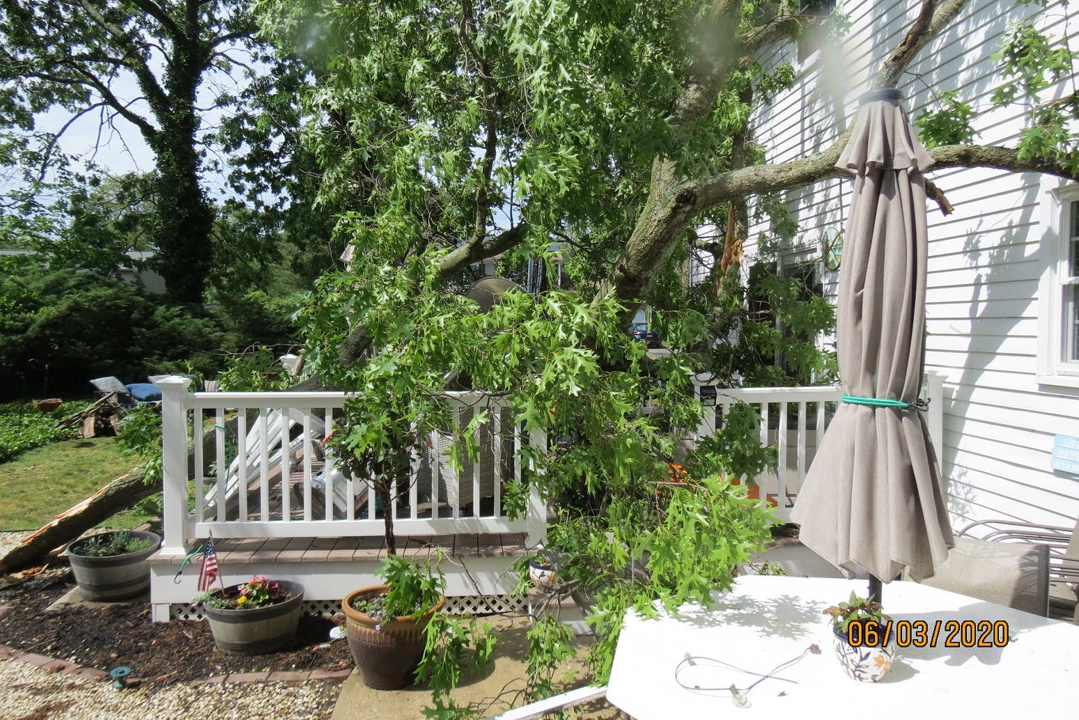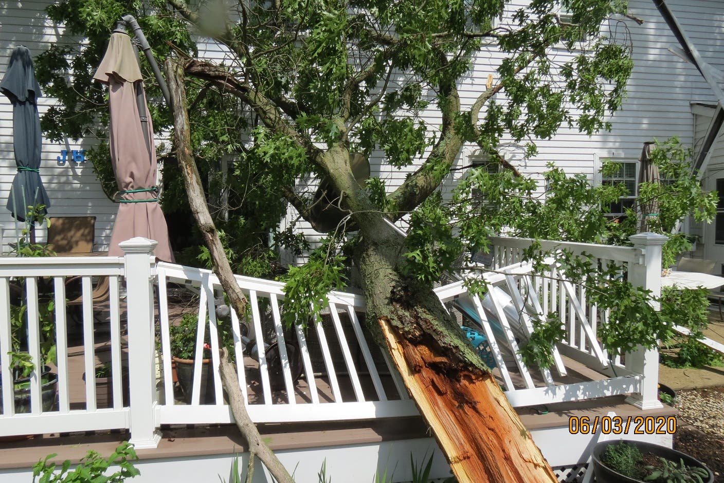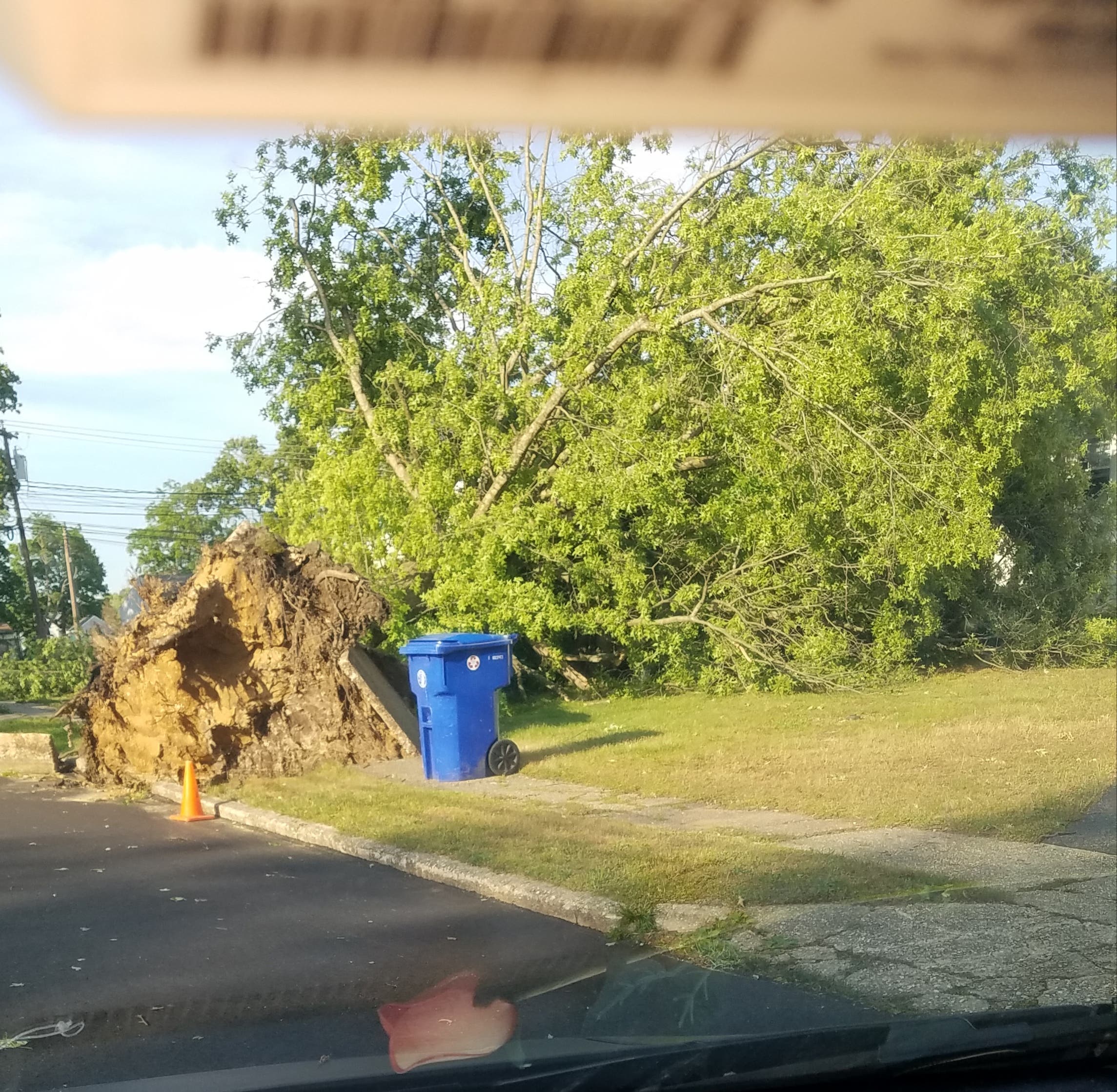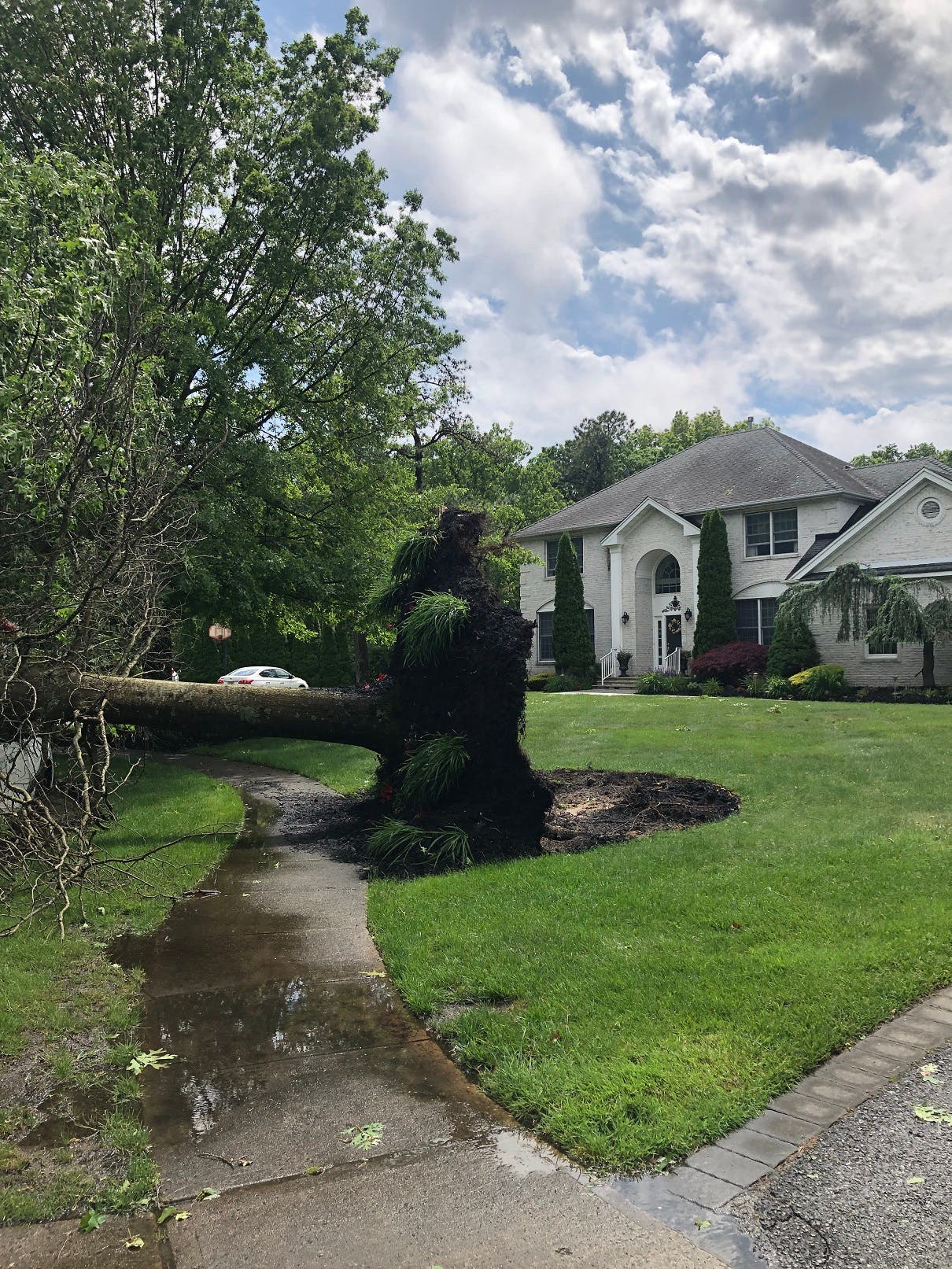 "The mail carrier had just delivered the mail within seconds of the tree falling, trapping her between the downed tree and the driveway," Fusella said. "She just missed getting hurt. Thank God no one was hurt on our street but there was much damage to clean up."