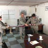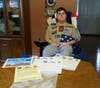 (PHOTOS: 1. Matt DeRiggi with the U.S. flag and other items sent to him by Sgt. Bud. 2. Sgt.. Bud and other members of the armed forces serving in Kuwait pose for a photo with the flag they sent to Matt. 3. Military personnel fold the flag. 4. Patches -- including a reverse image of a U.S. flag -- accompanied the flag and notes sent to Matt. 5. A member of the security unit adds a note to Matt. 6. Notes, the certificate verifying the flag was flown in his honor, and patches from personnel. 7. Matt with his parents Barbara and Tom, in their Toms River home. Photos of Matt and his family, credit Karen Wall. Photos from Kuwait, credit Sgt. Bud.)