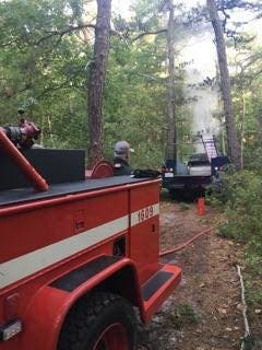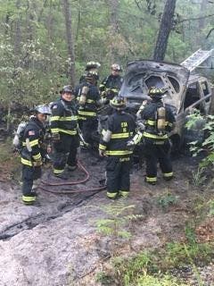 The Beachwood Volunteer Fire Department responded to a report of smoke about 5:45 a.m. in the area of the 600 block of Briar Way and discovered the truck on fire in the woods off Oak Street and Briar Way, fire company officials said.