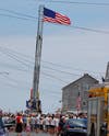The sounds of bagpipes and drums filled the air, sounding out the anthems of the U.S. Marine Corps, the Army, the Navy and the Air Force. A U.S. flag waved in the breeze high above the crowd from the top of the Ocean Beach Fire Company’s ladder truck, as veterans -- from World War II to Afghanistan -- stood at attention, surrounded by dozens of spectators old and young.