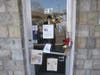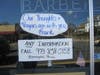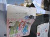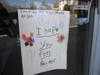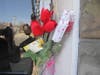 On Sunday, the door of Frank's Barber Shop was adorned with drawings by children as well as cards and flowers.