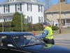 Officers distributing flyers on Main Street urging those with information to come forward.