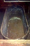 The "attic" which I was living in was half finished. It had a sitting room and two bedrooms and each room had little "secret doorways" that led into the unfinished portion of the attic. I can tell you this much, my daughter has played some very serious games of Hide & Seek in this house. In one of the many little doorways leading to nowhere, I discovered something that is now a major topic of conversation when people ask about the house-a tub.