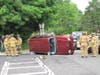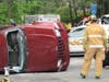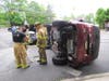 The Jeep was toppled over by the force of the impact, and the Jeep's windshield had been cut away to extract the driver by fire and rescue squad personnel.