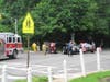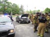Residents from nearby houses crowded the corners of the intersection to watch the emergency responders as they sprinkled sawdust to soak up anti-freeze spilled in the crash, and tow away the vehicles.