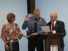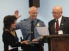 Sgt. Erik Hansson, a 13-year veteran of the department, was promoted to Lieutenant, and took the oath on a Bible held by his wife, Alyssa, read by Mayor Robert O'Toole.