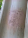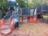 The swastika has since been covered over with paint, however the equipment is still mostly off limits, with plastic orange netting placed around the damaged slides.