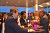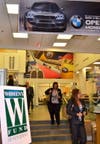The BMW showroom, with its soaring glass walls and gleaming surfaces, provided a stylish venue for the catered affair, a $100-per-person event that drew professionals from all vocations.