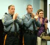"Those are most important in any organization. And that's why all these officers are standing behind you, because you have leadership and you have their loyalty, otherwise they wouldn't be here today."