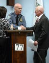 In his remarks to the council and assembled crowd, which included a sea of blue uniforms belonging to his fellow officers, Vanderstreet thanked his friends, family and colleagues for their support.