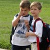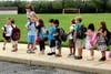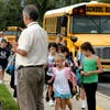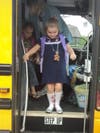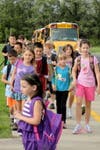 Primped and preened young scholiasts at on Thursday morning stood in their first single-file line awaiting the start a long academic journey, as Principal William Carson shepherded the controlled commotion of children exiting buses past the temporarily stalled convoy of incoming kindergarteners.