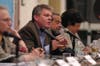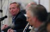 Mather broke up the candidates into two groups of four and asked separate questions of each group during the largely cordial event.