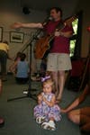 Nearly 100 parents and young children greeted Yosi, who played guitar and sang during the one-hour event. Audience participation was in high gear during songs such as "Five Little Monkeys Jumping on the Bed" and "Ring Around the Rosie."
