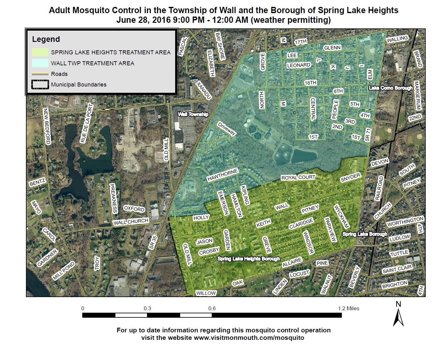 The area south of Belmar Boulevard between Route 35 and Route 71 in Wall Township and streets north of Allaire Road between Old Mill Road and Route 71 in Spring Lake Heights will be treated, the division said.