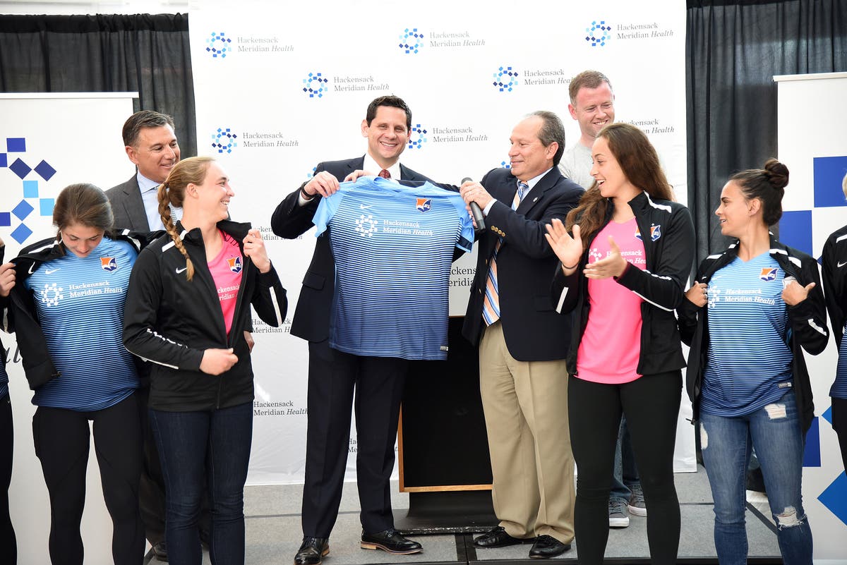The announcement, at Jersey Shore University Medical Center in Neptune, included an appearance by the Sky Blue FC players, who then patients at K.Hovnanian Children’s Hospital after the announcement, officials said. The team also presented a new uniform to Dr. Kenneth Sable, president of Hackensack Meridian Health Jersey Shore University Medical Center and K.Hovnanian Children’s Hospital.