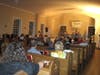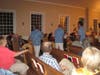 The concert was planned as an outdoor event, but was moved into the village chapel when it started raining. The wet weather did not dampen the spirits of concergoers as the five-member band worked the room with oldie standards like “Tonight,’’ “Rockin’ Robin’’ and “Step by Step.’’