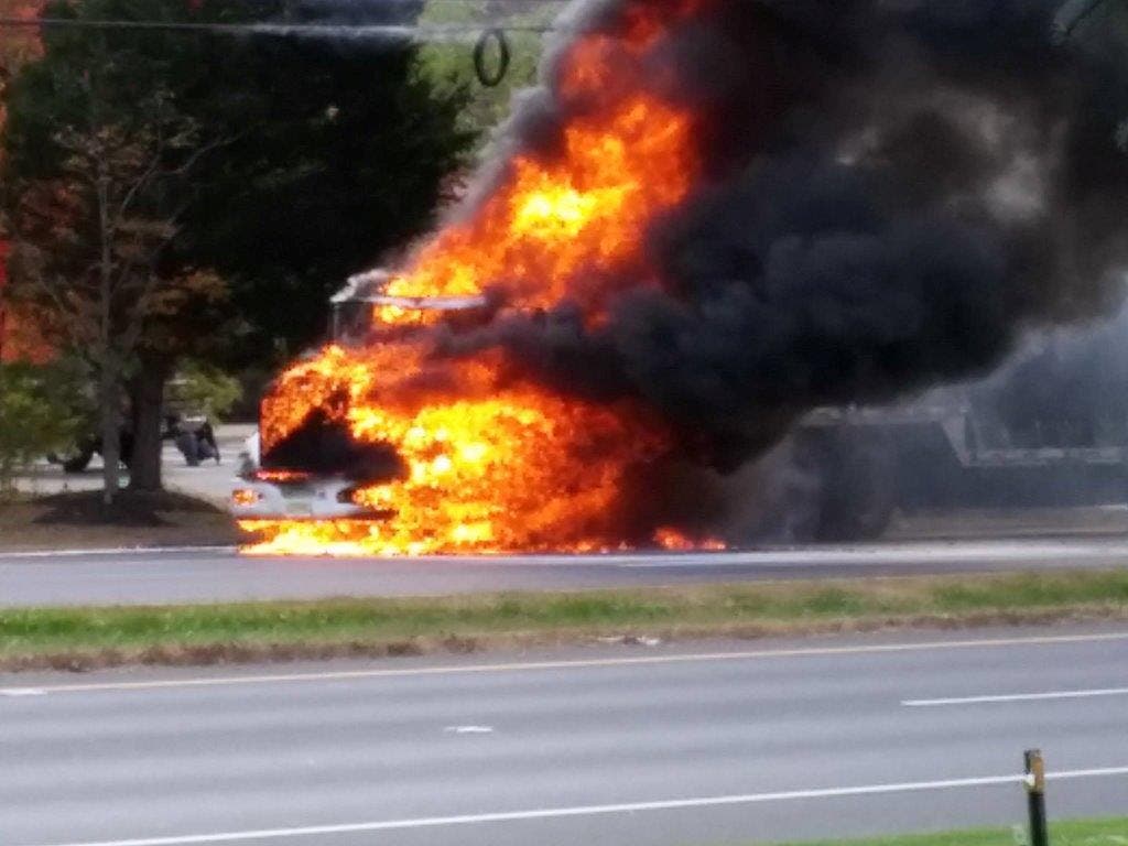 Lokerson said the Glendola and South Wall fire companies have extinguished the fire, and “several agencies are now on scene addressing a fuel and oil spill as a result of the fire. On scene assisting the Wall Township Police and Wall Township Office of Emergency Management are the Glendola Fire Company, South Wall Fire Company, Wall Township EMS, Monmouth County Hazardous Material Unit, NJ DEP, NJ State DOT and JCP&L, he said.