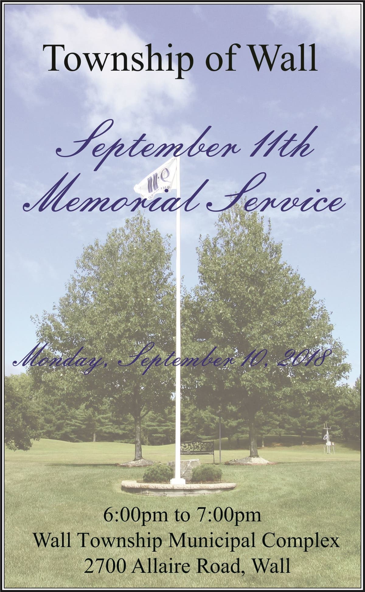 WALL, NJ — Wall Township will hold its annual remembrance ceremony marking the Sept. 11, 2001 terror attacks Monday evening in Town Hall, according to the township website.