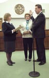 Foster, whose wife, Joyce, held a bible while Freeholder Joseph Arnone administered the oath of office pledged to be equal to the task of in a short speech after settling into the center chair behind the dais.