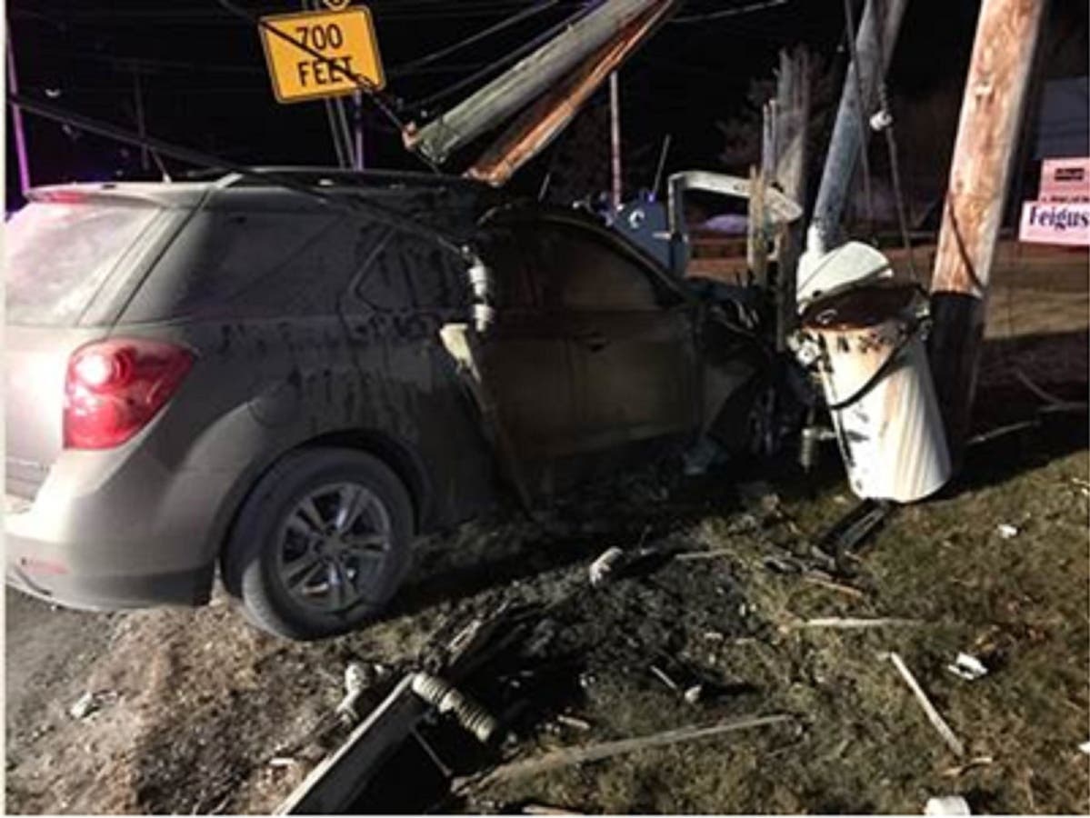 The Equinox left the road near Tilton's Corner Road and hit a utility pole holding three transformers, Carpino said, snapping the pole and bringing it and the transformers down on the SUV.
