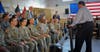 He was speaking to an audience of mostly middle-aged and older adults wearing suits, tank tops, National Guard fatigues or veterans insignias. The governor was not faced with the opposition that turned out for earlier town halls. Protesters were absent outside the facility as doors opened at 2 p.m. through the end of the program, around 5 p.m.