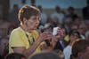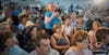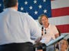 One audience member brought hand-made signs supporting Christie, while others' intentions were known by the political bumper stickers of vehicles that packed the neighboring Winding River Ice Skating Rink.