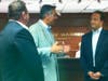 Mayor Gary DiNardo accepted a $1,000 donation for the Sept. 11 Memorial project from Marion and Associates.