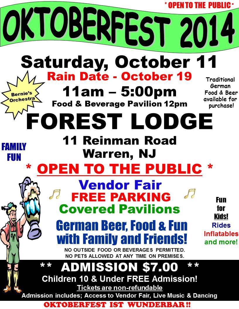 NJ's BEST Oktoberfest & Vendor Fair Forest Lodge, 11 Reinman Road, Warren NJ Saturday, October 11 (rain date: Sun., October 19)