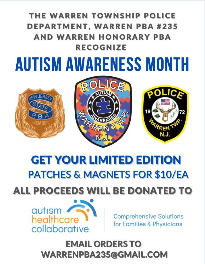 The Warren Township PBA Local #235 is selling limited-edition patches and magnets for $10 each throughout April. All proceeds will benefit the Autism Healthcare Collaborative.