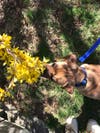 He is a ball of energy who loves to zip around our yard and play with all the dogs in the neighborhood. On our walks around town, he is guaranteed to find a stick that is bigger than his little 18 pound body, which he insists on carrying all the way home with him. This is quite a comedy routine, which always gets a laugh from people driving by.