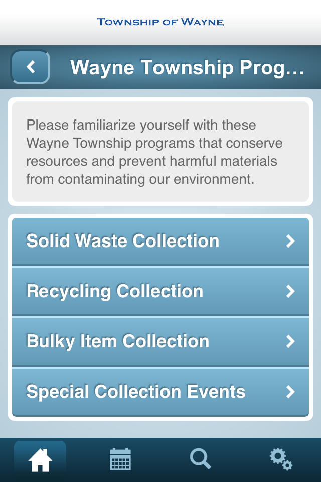 Residents simply select Wayne from the list and tell the application what section of town they live; the application will then provide a schedule for that part of town.