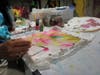 Gandhi taught herself how to paint on silk eight years ago. She paints on both large, flowing pieces of the material and on silk shirts too.