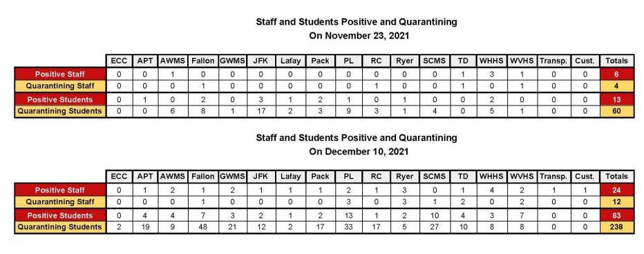 COVID cases and quarantines within Wayne Township Public Schools have sharply increased. On Nov. 23, the district had 19 positive students and staff and 64 people under quarantine. As of Friday, officials reported 24 staff and 63 students who had tested positive, along with 12 additional employees and 238 students quarantining.