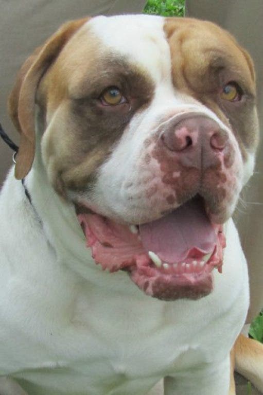 "Caesar" is a 1-and-a-half-year-old male American Bulldog mix. This is one big boy that is super friendly, lovable and has the best personality around.