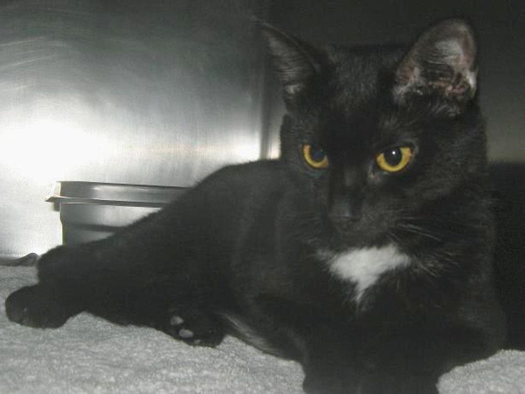 "Mallory" is a 9-month-old, spayed female black cat. Mallory is a friendly girl with big, beautiful eyes you can't help but fall in love with. She has a curious personality and loves to get to know other cats by shaking paws with them.