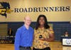 RCGC three-time national discus, hammer and shotput champion Elisia Lancaster receives her championship ring from Roadrunner Head Coach Ryan Hughes. Hughes was named Men’s Track & Field National Coach of the Year.