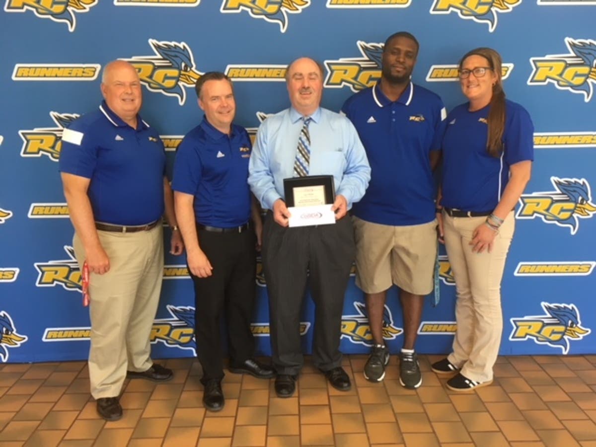 Ostrum traveled with the team providing written details, photographs and video coverage to the local media and for the College’s website. His reporting of the National Champions did not go unrecognized. On June 7, the College Sports Information Directors of America (CoSIDA) presented Ostrum with a plaque for his contributions in support of RCGC’s recent Men’s Outdoor Track & Field National Championship.