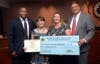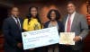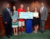 2. The Union County Board of Chosen Freeholders awarded the Union County TEAMS charter school of Plainfield a certificate of recognition for its second-place finish in the UC-STEP campaign, Donate to Educate – Schools Supplying Schools. Pictured here, Freeholder Chairman Mohamed S. Jalloh (far l.) and Freeholder Alexander Mirabella (far r.), present a $500 school grant award to (l.-r.) student Esther Lawal and UC STEP advisor Jasmin Bethea of TEAMS. Photo by James Lowney/County of Union.