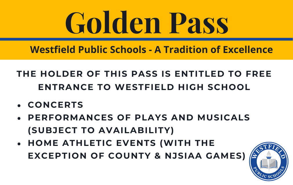 The Golden Pass Program, launched more than a decade ago, provides Westfield residents ages 65 and older free entrance to many of the district’s exciting sporting events and wonderful performances at Westfield High School.