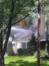 According to neighbors, the fire began in the kitchen microwave around 1:30 p.m. Two boys, ages 14 and nine, were home at the time but ran out of the house to safety.