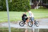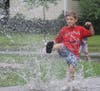 A few towns over in South Orange, we found children splashing in Irene's puddles.