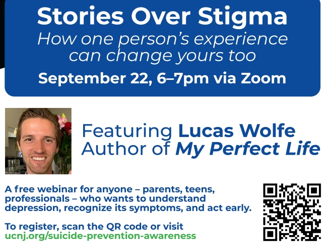 The Union County Board of County Commissioners invites residents to attend “Stories over Stigma,” a free webinar featuring Lucas Wolfe, author of My Perfect Life, on Wednesday, September 22, from 6:00 p.m. to 7:00 p.m., on Zoom.